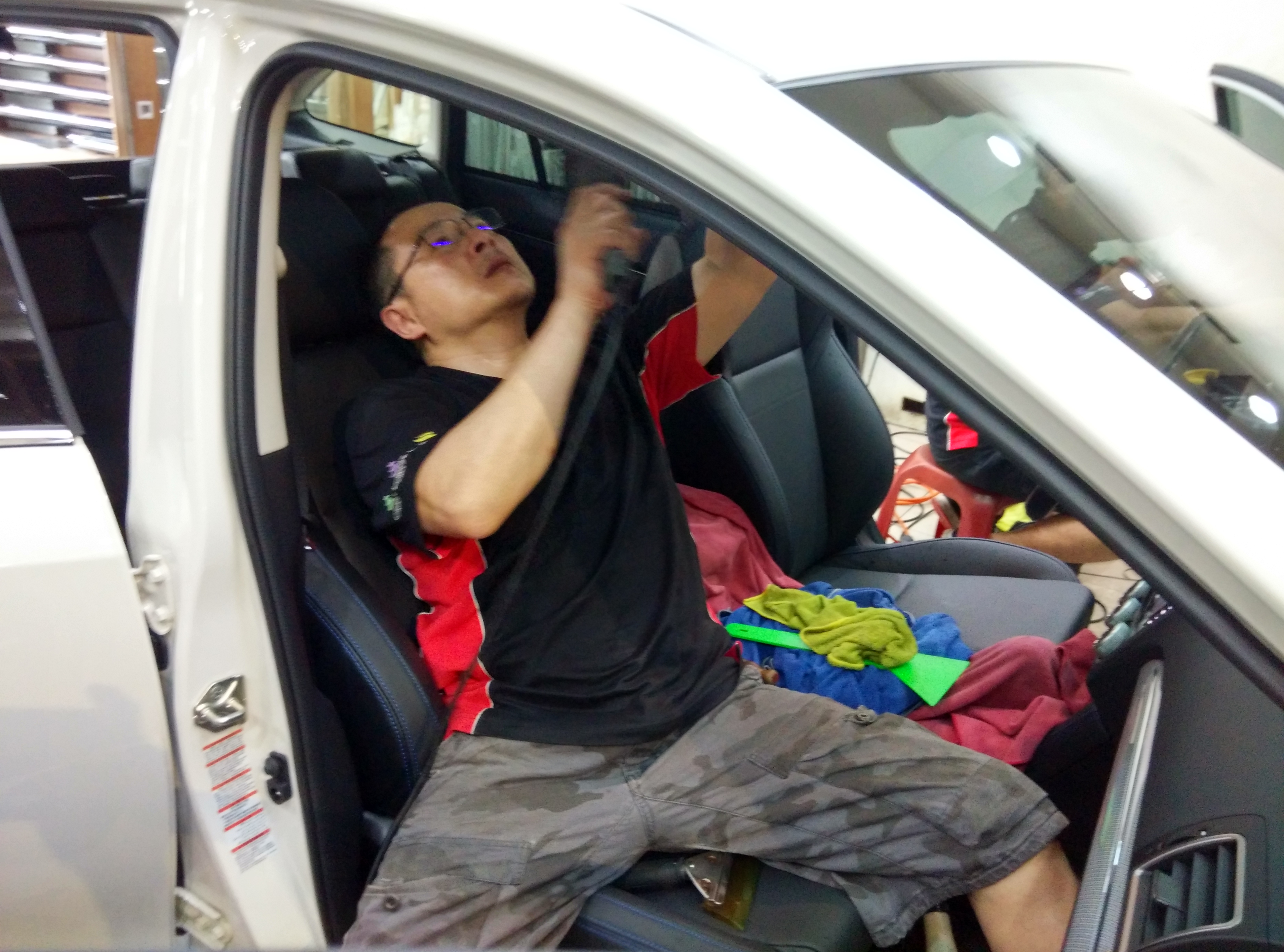 小編沒想到在貼天窗之前還要先烘烤,只能說當老闆不容易,要比較辛苦!! 宏竹讚!!!